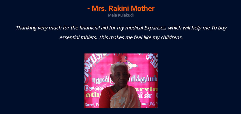 Let's Grow with each other. a single track can not take train to its destination, a single hand can not make a sound, we are joining with you for other's livelihood. Sharing each other will make a big smile. in Tamil " Aram seiya Virumbu " - In English, " like to do Others ", No man can satisfy with holding in him/her. When you give something to others, you will see lots satisfaction in you.